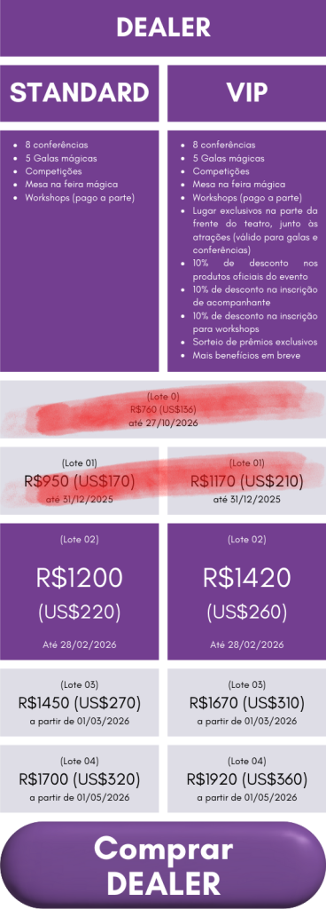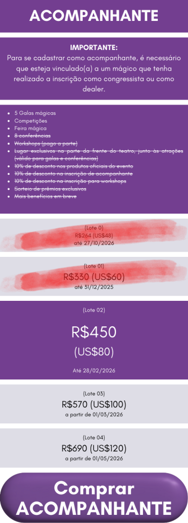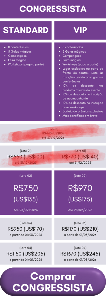 Prepare-se para viver uma experiência única e inesquecível! O Festival Internacional de Mágica e Ilusionismo chega à sua quarta edição, de 20 a 24 de maio de 2026 e promete transformar Belo Horizonte no epicentro da magia e do encanto.